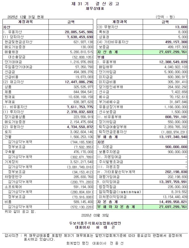 µÎº¸½Äǰ 'Á¦ 30±â °á»ê°ø°í'